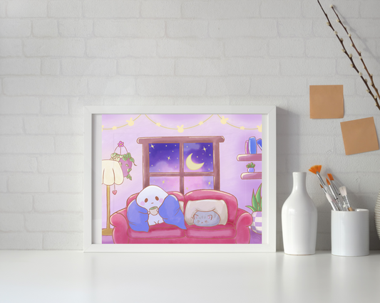 Cute Cozy Room with Dreamy Night Sky gentle blob™ Digital Art Print